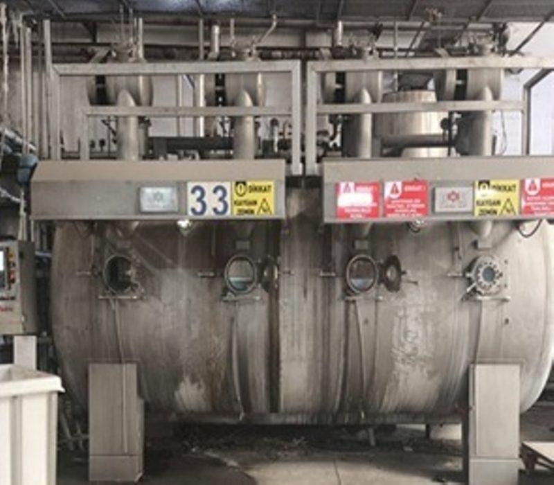 Canlar Brand HT Fabric Dyeing Machine, 800 kg capacity, 4 spindles, 2008 model, installed and running situation.