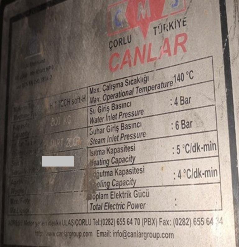 Canlar HT Fabric Dyeing Machine, 800 kg, 2008 model