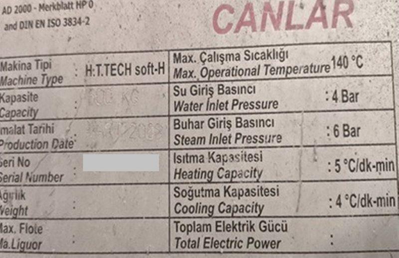 Canlar HT Fabric Dyeing Machine, 600 kg, 2008 model