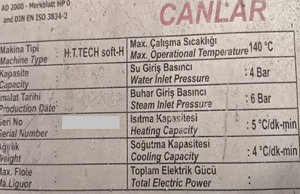 4 pcs Gusken Brand Jacquard Velvet Weaving MachineMagazaGeneral ProductsSecond Hand MachinesDyehouse MachinesFabric Dyeing Machines Canlar HT Fabric Dyeing Machine, 600 kg, 2008 model