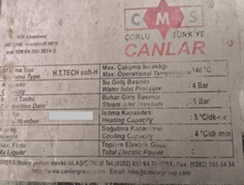 4 pcs Gusken Brand Jacquard Velvet Weaving MachineMagazaGeneral ProductsSecond Hand MachinesDyehouse MachinesFabric Dyeing Machines Canlar HT Fabric Dyeing Machine, 800 kg, 2008 model