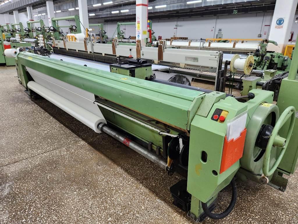 2 pcs weft feeding, 14 shafts, 4 frames, 1,5 beams, 10.000 heald wires, 10.000 droppers, installed and running situation