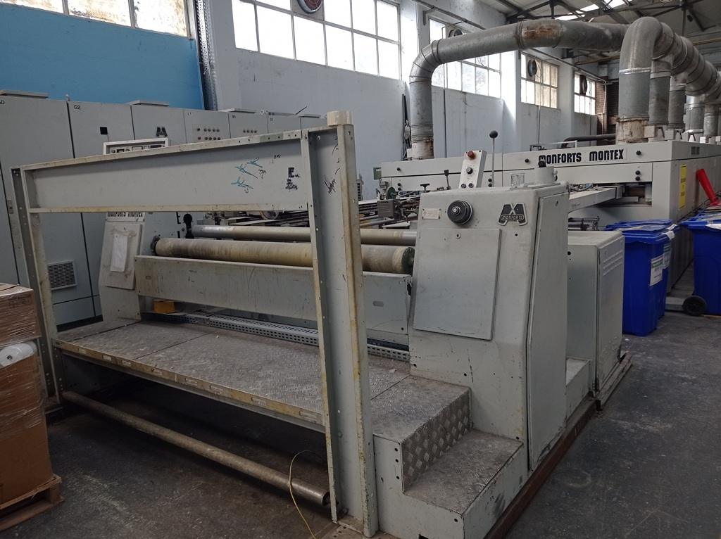 - 1 adet Monforts marka ram makinesi, kumaş tutkallama, 180 cm çalışma genişliği, 1992 model, 4 kamara, doğalgazlı