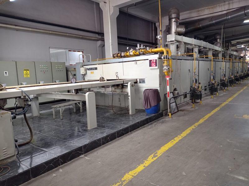 Ilsung Sun Super Marka Ram Makinası, 1.80 mt çalışma eninde, 2004 model, 8 kamara, doğalgazlı, yatay zincir, iğne, kumaş açıcı, fular, Daeil atkı düzenleme, çıkışta soğutma silindirleri, doka sarma, sallama, , kurulu ve çalışır durumda.