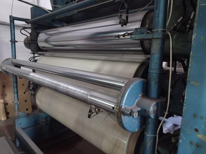 Ramisch kleinewefers kalender Makinası, 180 cm silindir genişliğinde, 3 silindir (2 adet çelik silindir, 1 adet polyamid silndir), kurulu ve çalışır durumda.