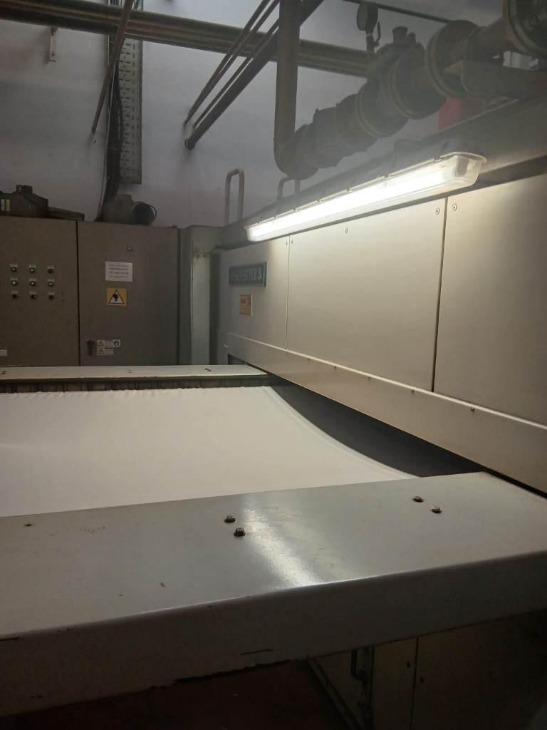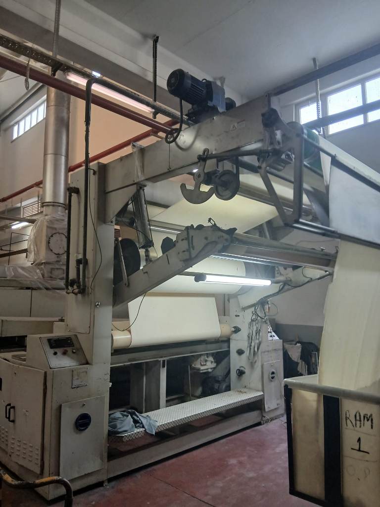 Ilsung Sun Super Marka Ram Makinası, 1.80 mt çalışma eninde, 2004 model, 8 kamara, doğalgazlı, yatay zincir, iğne, kumaş açıcı, fular, Daeil atkı düzenleme, çıkışta soğutma silindirleri, doka sarma, sallama, , kurulu ve çalışır durumda.