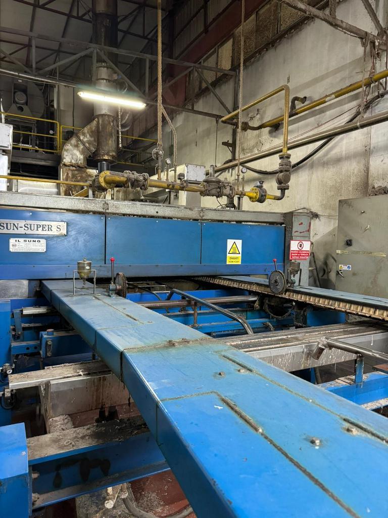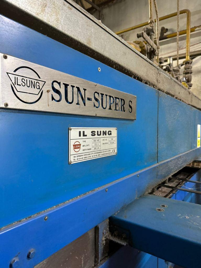 Ilsung Sun Super Marka Ram Makinası, 190 cm çalışma eninde, 2012 model, 8 kamara, doğalgazlı, yatay zincir, iğne, kumaş açıcı, fular, Daeil atkı düzenleme, çıkışta soğutma silindirleri, doka sarma, sallama, , kurulu ve çalışır durumda.
