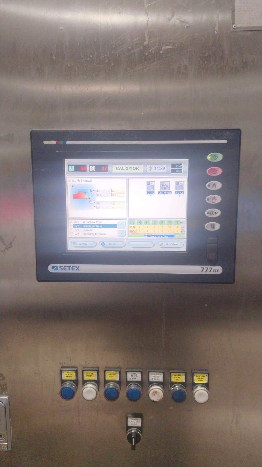 Gofront Marka Havalı HT Kumaş Boya Makinası, 250 kg kapasiteli, 2013 model, 2 girişli, Setex 777 programatör, 1 adet tank, kurulu ve çalışır durumda.