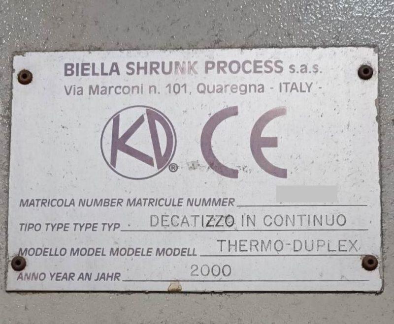 Biella Shrunk Process Thermo-Duplex Kade Makinası, 183 mm keçe eni, 160 cm çalışma eninde, 2000 model, kurulu ve çalışır durumda