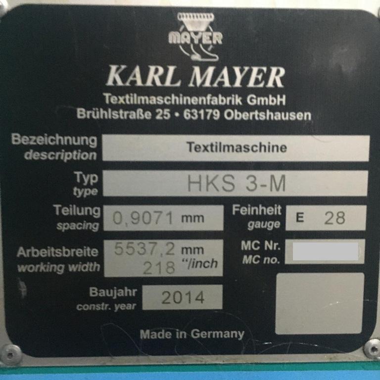 Karl Mayer HKS3-M Raşel Örme Makinesi, 553 cm eninde (218 inç), 28 fayn, 2014 model, kurulu ve çalışır durumda