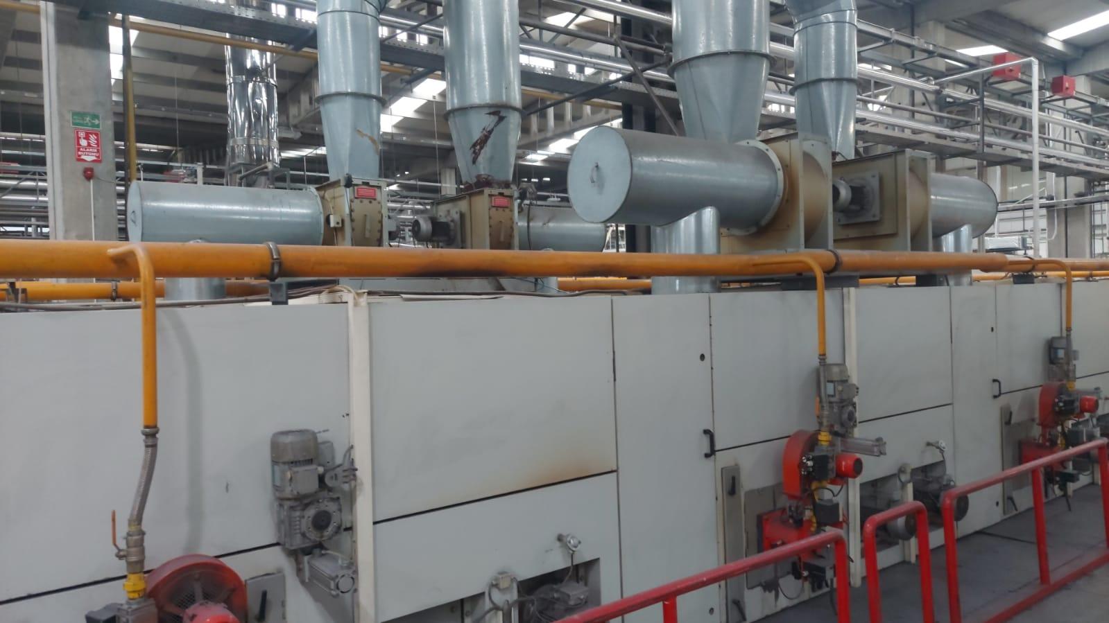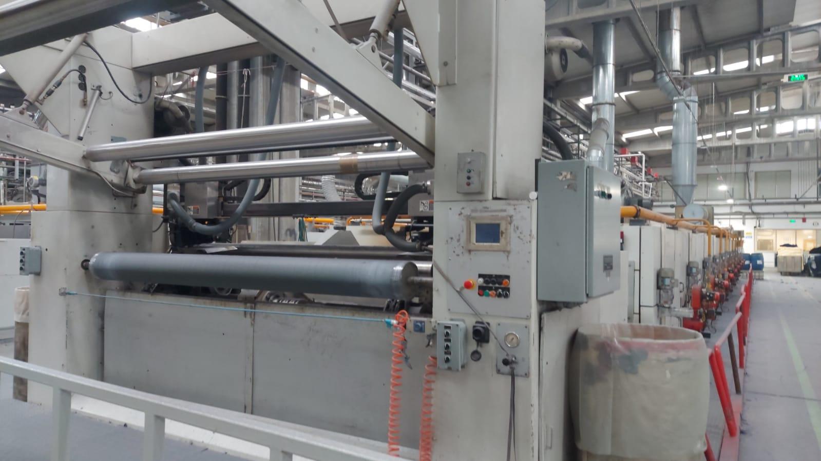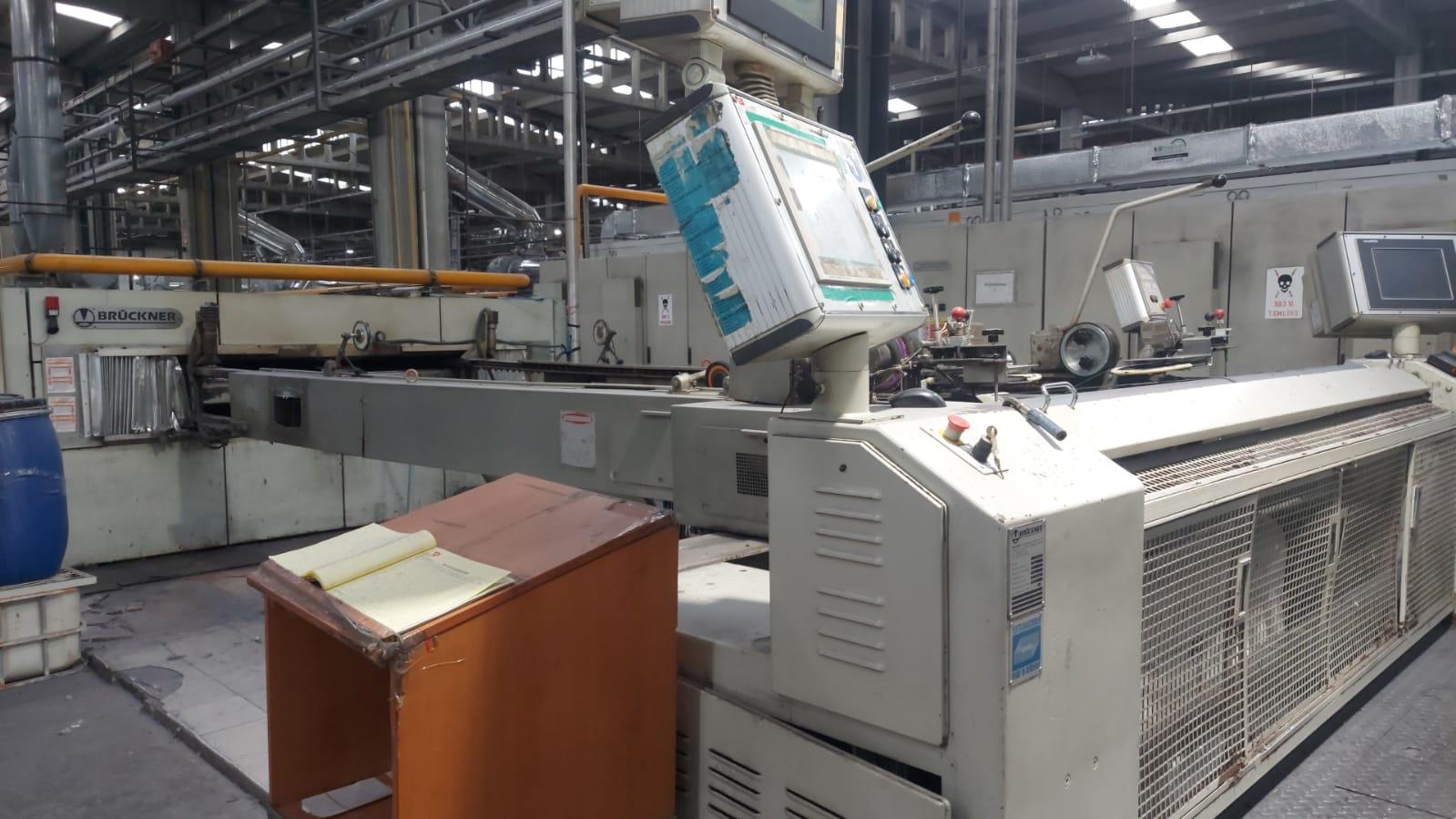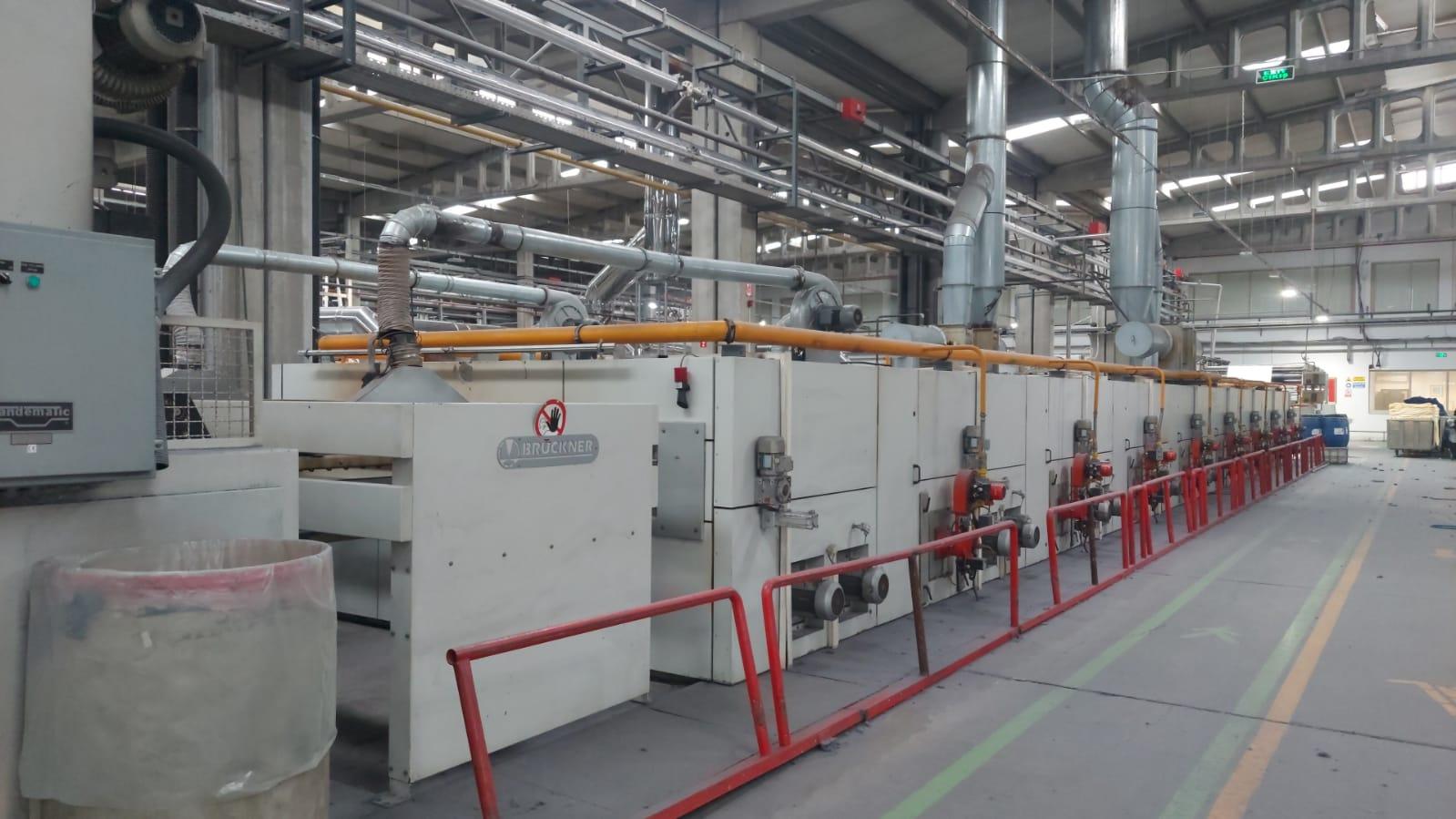 Bruckner Marka Ram Makinası, 240 cm çalışma eni, 2004 model, 8 kamara, doğalgazlı (Maxon brülör), dikey zincir, çift fular (1 adet Bruckner marka, 1 adet Kusters marka), Mahlo atkı düzenleme, sallama, kurulu ve çalışır durumda.