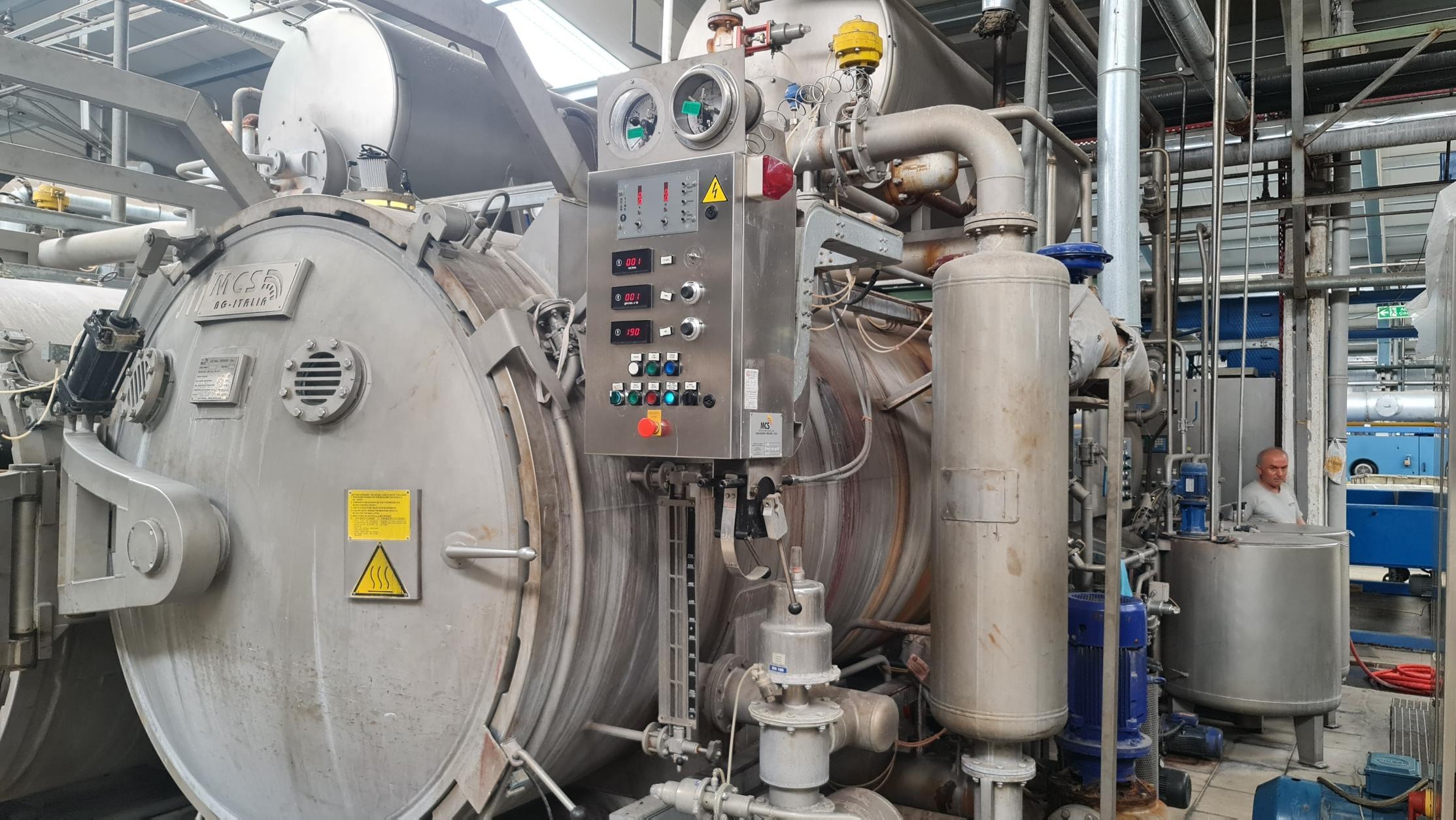 MCS Marka SF-100 Softflow HT Kumaş Boyama Makinası, 300 kg kapasiteli, 2 gözlü, 2003 model, Telemecanica programatörlü, su rezevr tanklı, kurulu ve çalışır durumda.