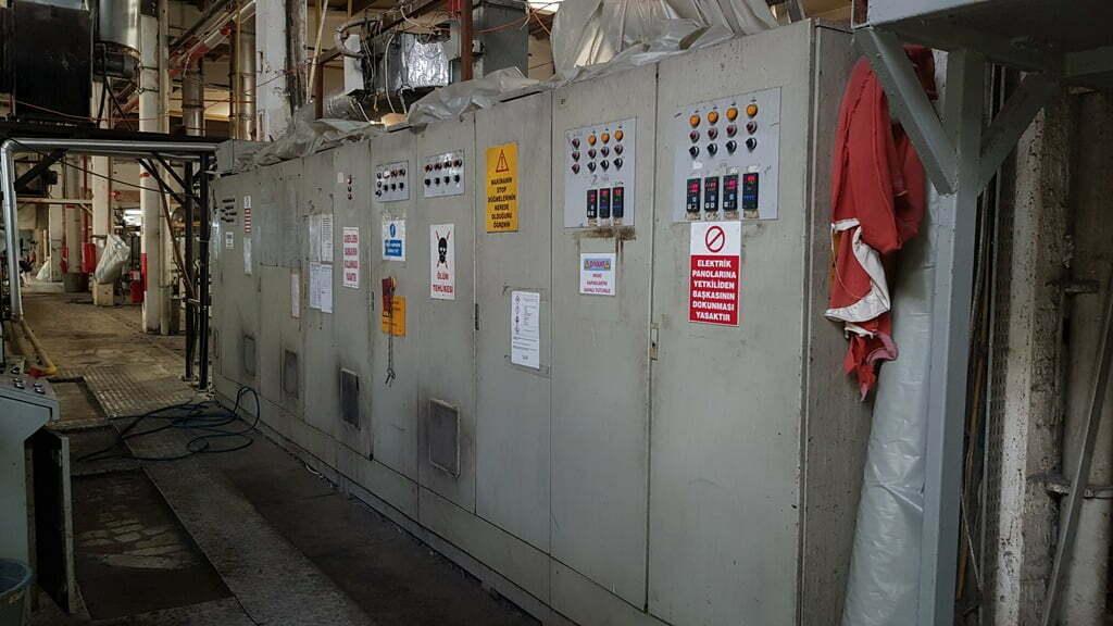 Monforts Montex Matex 5000 Ram Makinası, 2.40 mt çalışma eninde, 2.60 mt silindir eni, 1998 model, 7 kamara, yatay zincir, İĞNE-MANDAL, girişte; kumaş açıcı, fular, Mahlo Atkı düzenleme, çıkışta; kenar kesme, doka sarma, sallama, invertör, Maxon brülör (4 brülör kabinlerin sağ tarafında, 3 brülör kabinlerin sol tarafında yer almaktadır), doğalgazlı, kurulu ve çalışır durumda.
