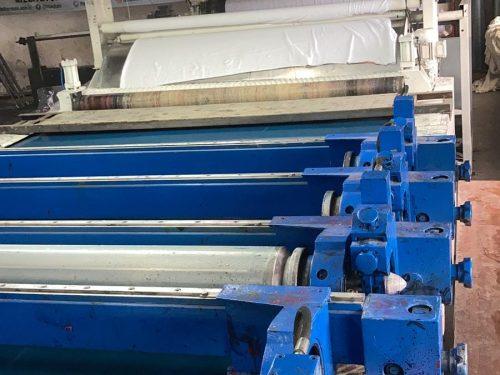 Osthoff Gaze Makinası, 330 cm çalışma eni, 2005 model, 2 adet bek ünitesi, kumaş açıcı, fırça, toz toplama, gaze ünitesi, haşıl sökme, doka sarma, kurulu ve çalışır durumda.